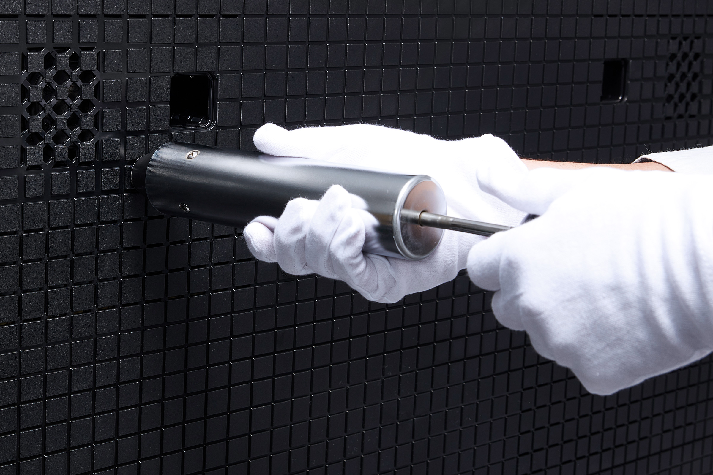 ●素材の違いは音質に大きく影響します。優れた音質と再生プラスチック材の使用を両立させるため、数年にわたり研究を重ねた結果、スピーカーボックスに再生材を使用することが可能になりました。
