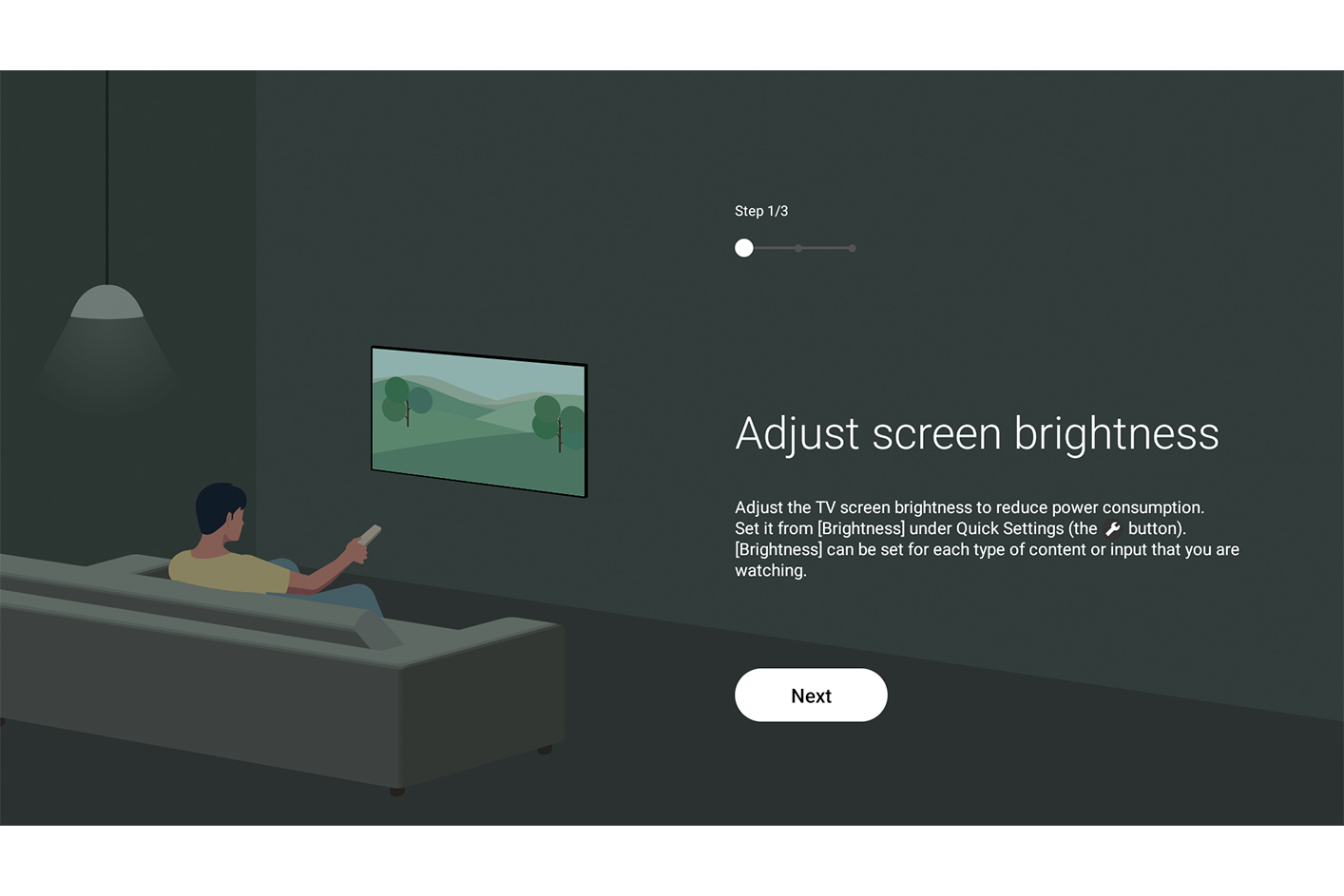エネルギー消費量や新しい資源の使用量を抑えることで、ブラビア®は環境負荷の削減に貢献しながら、自宅での最高の映画視聴体験と佇まいが美しい上質なデザインの提供を両立するイノベーションを実現しています。また、TV視聴時の電力削減に関する設定も簡単に行えるため、共に環境負荷の低減に貢献することが可能です。