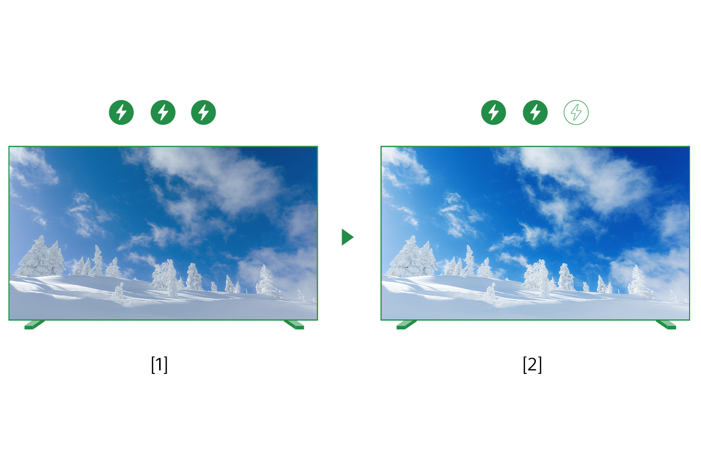 独自の信号処理により画面内のシーンごとに明るさを自動で調整することで、電力消費量を最適化しながら、よりメリハリのあるリアルな映像を実現します。