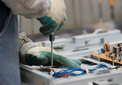 倉庫から処理工程に運ばれた家電製品は、まず人の手で解体されます。一台一台ていねいに解体することで、プラスチック部品や基板などをより質の高い状態で回収します。