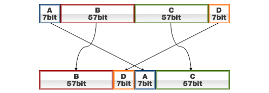 A simple linear operation called DoubleSwap is used in the key scheduling part. See Figure 7. The DoubleSwap function is a bit operation taking a 128-bit value as an input, then dividing the input into 4 parts and shuffling them to increase security. The DoubleSwap function can be used for rapidly generating round keys while maintaining the efficiency of software and hardware implementation.