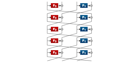 CLEFIA employs a 4-branch Feistel structure to realize compactness and high speed. Two different matrices are used, each matrix for each F-function in a round. This means that all round functions are identical, so encryption can be done without additional cost of implementation. Using DSM, the number of rounds can be reduced to 70% of a structure without DSM.