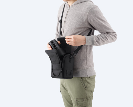 - Versatile options for carrying by belt attachment loop, handle or bundled shoulder strap.