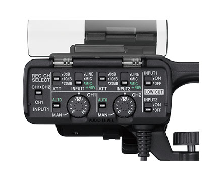 - Optional Bracket VCT-55LH is useful for attaching the XLR Adaptor to various cameras.