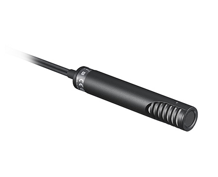 Micrófono con condensador de electreto Modelo: ECM-MS2 Haz clic para obtener más información Asequible micrófono estéreo compacto, ideal para acoplar a videocámaras HandyCam FDR-AX1 Calidad de sonido excelente Puede cambiarse de estéreo a monoaural y viceversa Diseño compacto y ligero