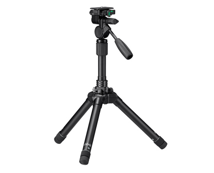- Panhead 3 arah dapat membuat tiga jenis pergerakan untuk pengambilan gambar komposisi horizontal dan vertikal yang serbaguna: geser kiri dan kanan; miring naik dan turun; dan miring dari sisi ke sisi (hingga 90 derajat turun ke sisi kanan/kiri, sempurna untuk mengambil gambar komposisi vertikal).