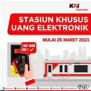 KCI has designated several stations as “Special Electronic Money Station (Stasiun Khusus Uang Electronik)”, where they have stopped selling single trip tickets to avoid queueing at the ticket vending machines, reduce the number of cash transactions and to promote the use of KMT. KCI intends to expand this Special Electronic Money Station to all its stations in 2021.