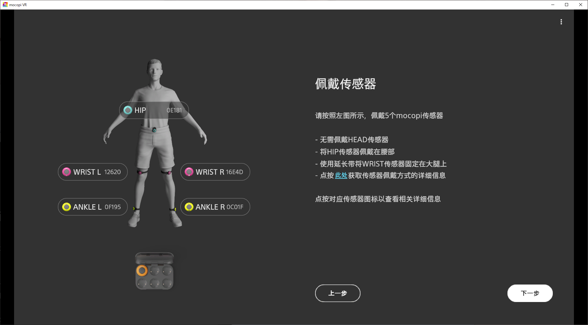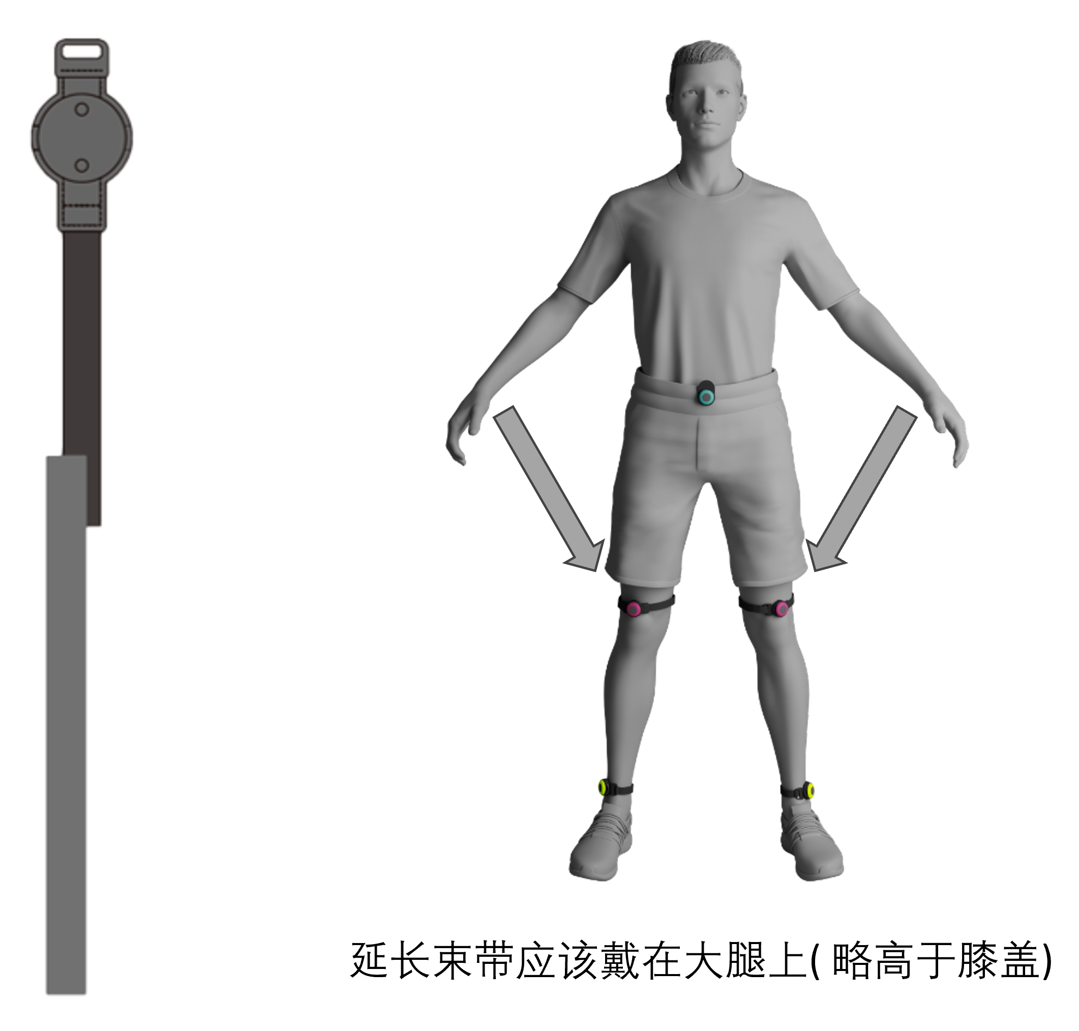 无需佩戴HEAD传感器. 将HIP传感器佩戴在腰部. 要将WRIST传感器固定在大腿上,需要使用延长带.