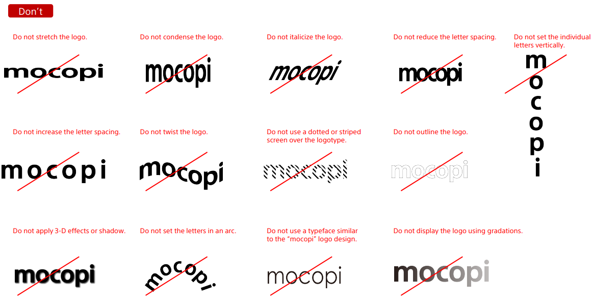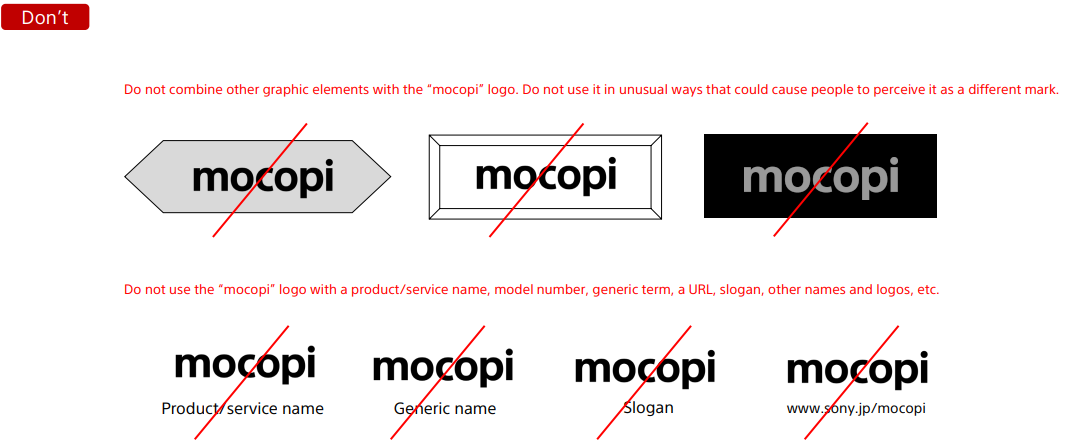 原则上,“mocopi”标识无需附带商标符号(®或™)。
