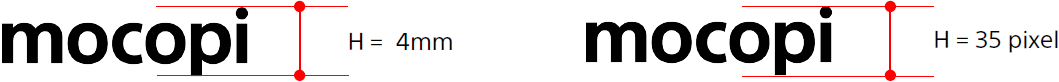 通常情况下,“mocopi”标识的最小尺寸应设置为4毫米字符高度。