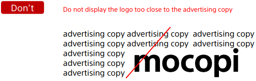 应始终清晰醒目地显示“mocopi”标识。 应考虑背景,以免削弱“mocopi”标识的印象;标识周围应留有足够空白(分隔区)。