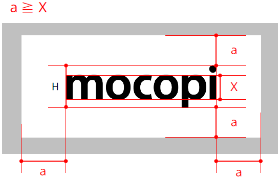 确定“mocopi”标识尺寸时,请参考标识的字符高度(H),如下所示。
