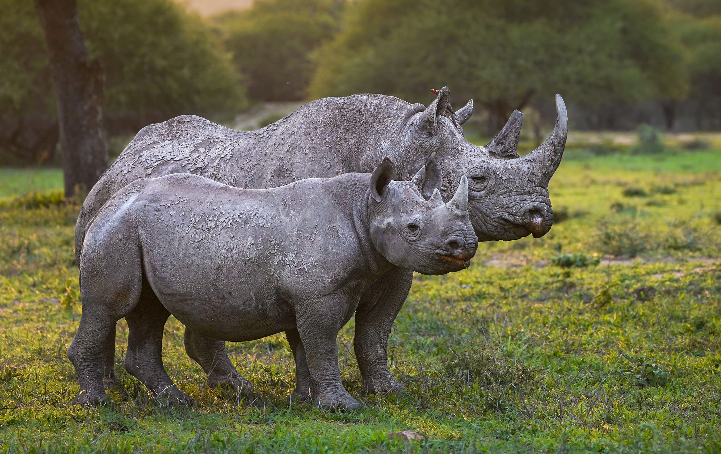 A mother rhino and calf. The savanna allows you to get up close to animals.