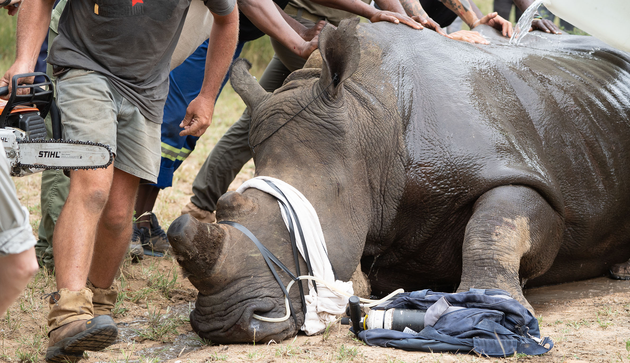 Rhino conservation activities, such as dehorning, help protect rhinos from poaching.