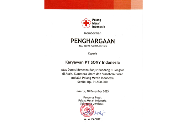 In December, Sony Group in Thailand donated a total of 340,066 THB to Thai Red Cross on 16 December in support of the Southern Thailand Flooding which affected 719,858 household.