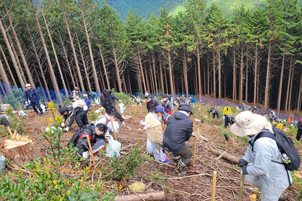 In September and November, The "Angel Forest Project," in which SGMO participates, is an environmental conservation activity aimed at regenerating forests and restoring biodiversity, organized by Earth Worker Energy, an NPO based in Aichi Prefecture. SGMO is working with companies, organizations, and local communities to cultivate native species seedlings, plant trees, and develop Satoyama.