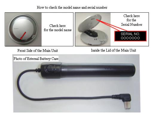 To all customers who own a “CD Walkman” with the model names and serial numbers listed below, we would like to ask to contact our call center.