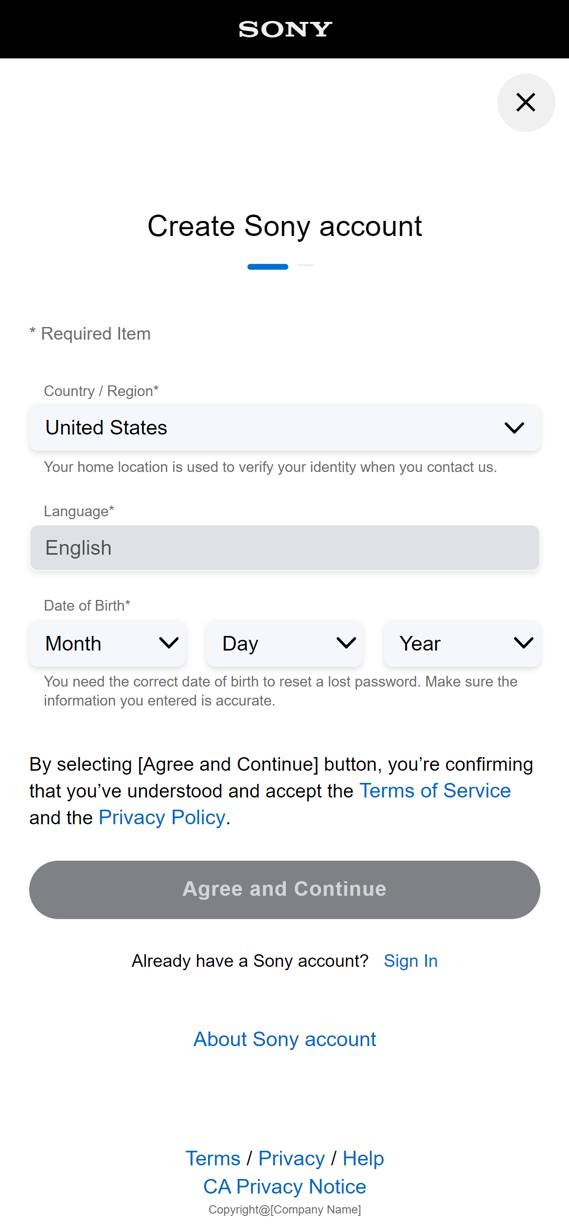 If you already have an account with an applicable Sony group service, you can sign in by entering your registered email address and password.