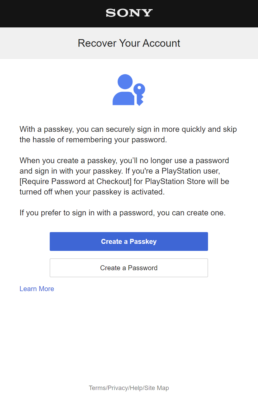 If you want to sign in using a passkey, please press the [Create a passkey.] button and follow the on-screen instructions to create a passkey. If you want to sign in using a password, please press the [Create a Password] button.