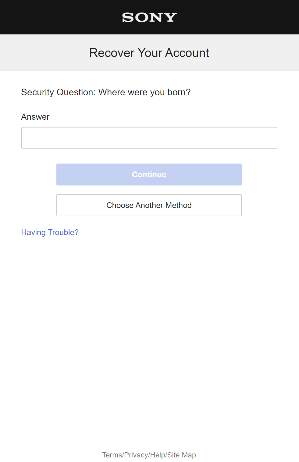 If you selected “Security Question”, enter the answer to that security question and select [Continue].