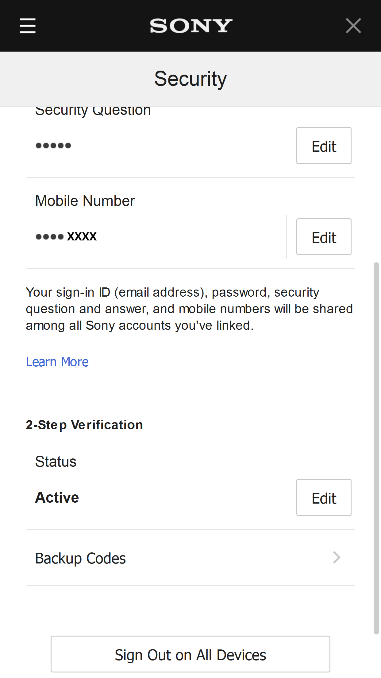 - Select [Edit] for the security settings from the "Account settings" screen.