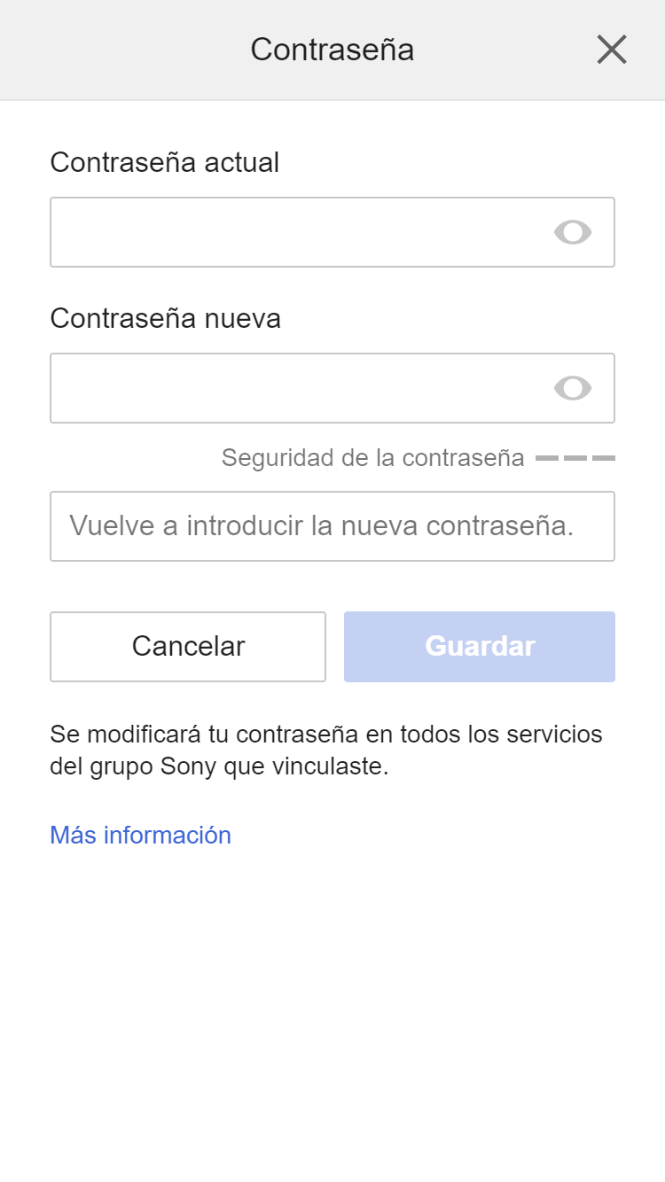 - Introduce tu contraseña actual y tu contraseña nueva, y luego selecciona [Guardar] para finalizar el cambio de tu contraseña.