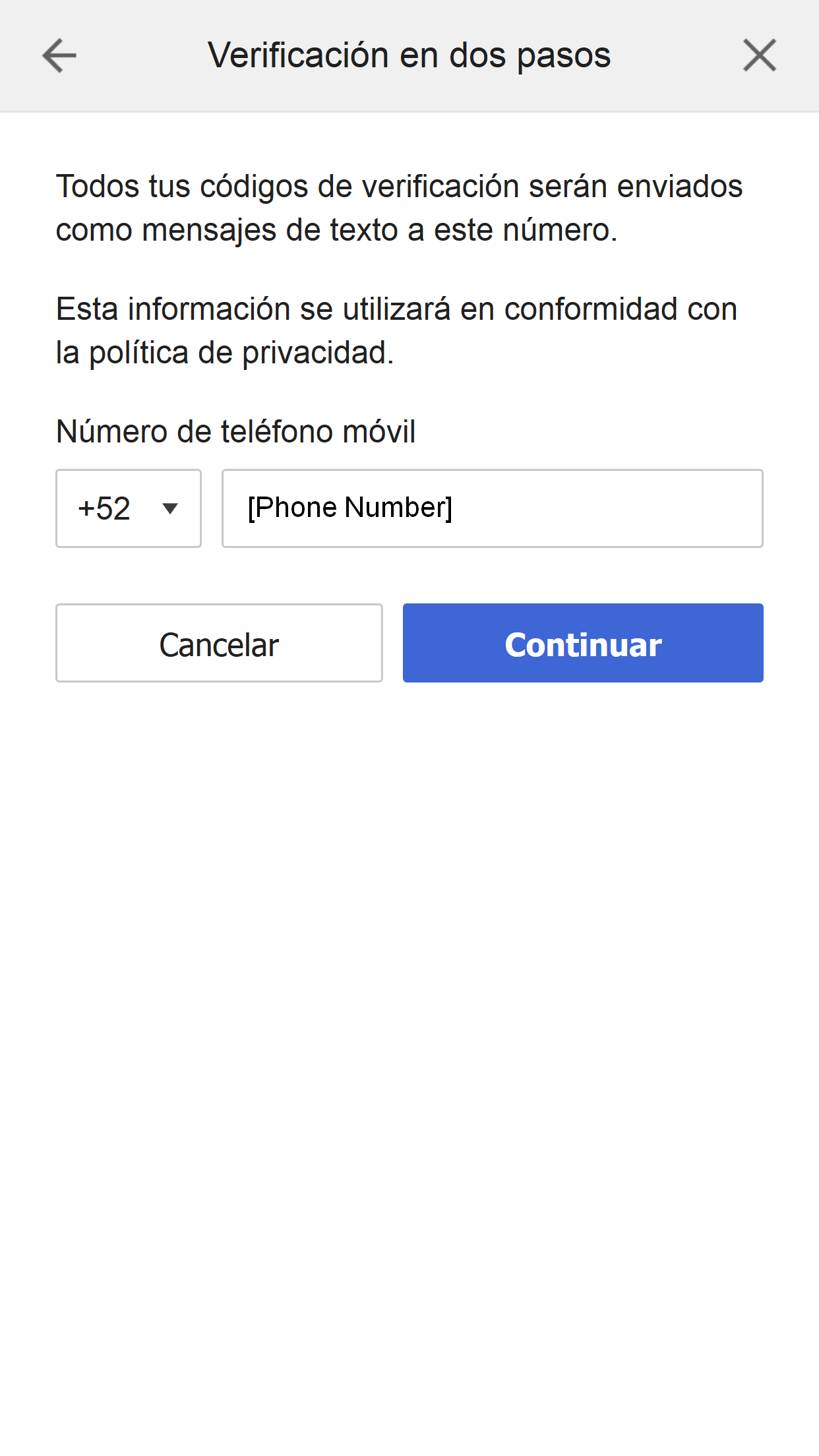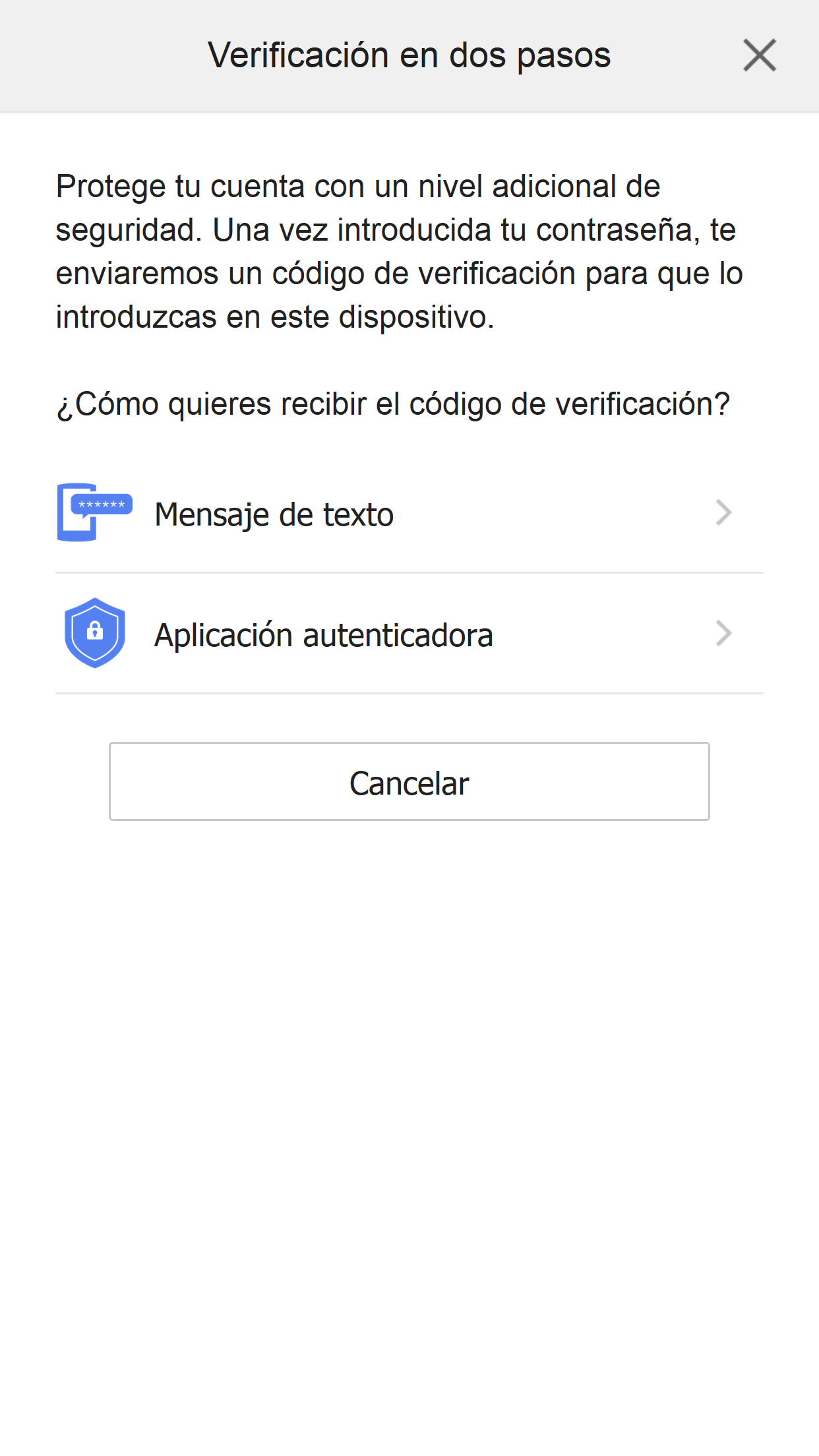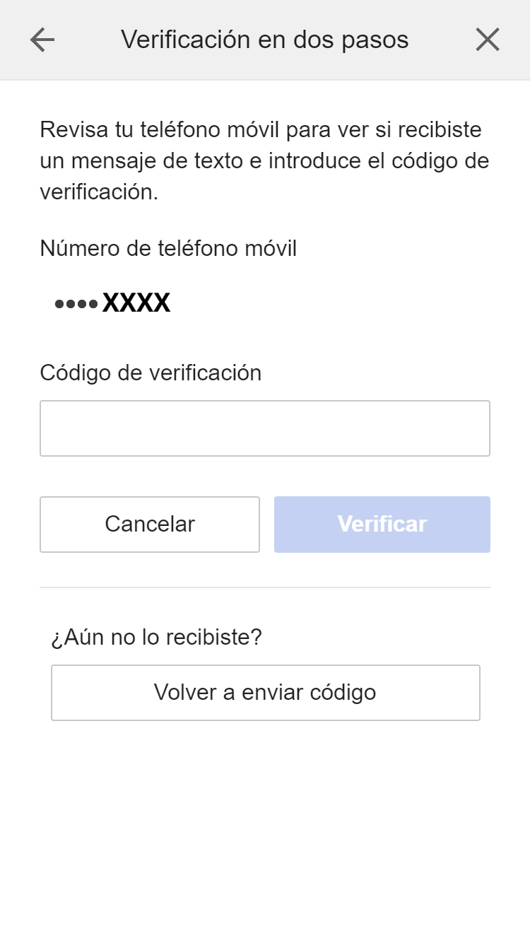 Si activas la verificación en dos pasos, necesitarás un código de verificación cuando inicies sesión.