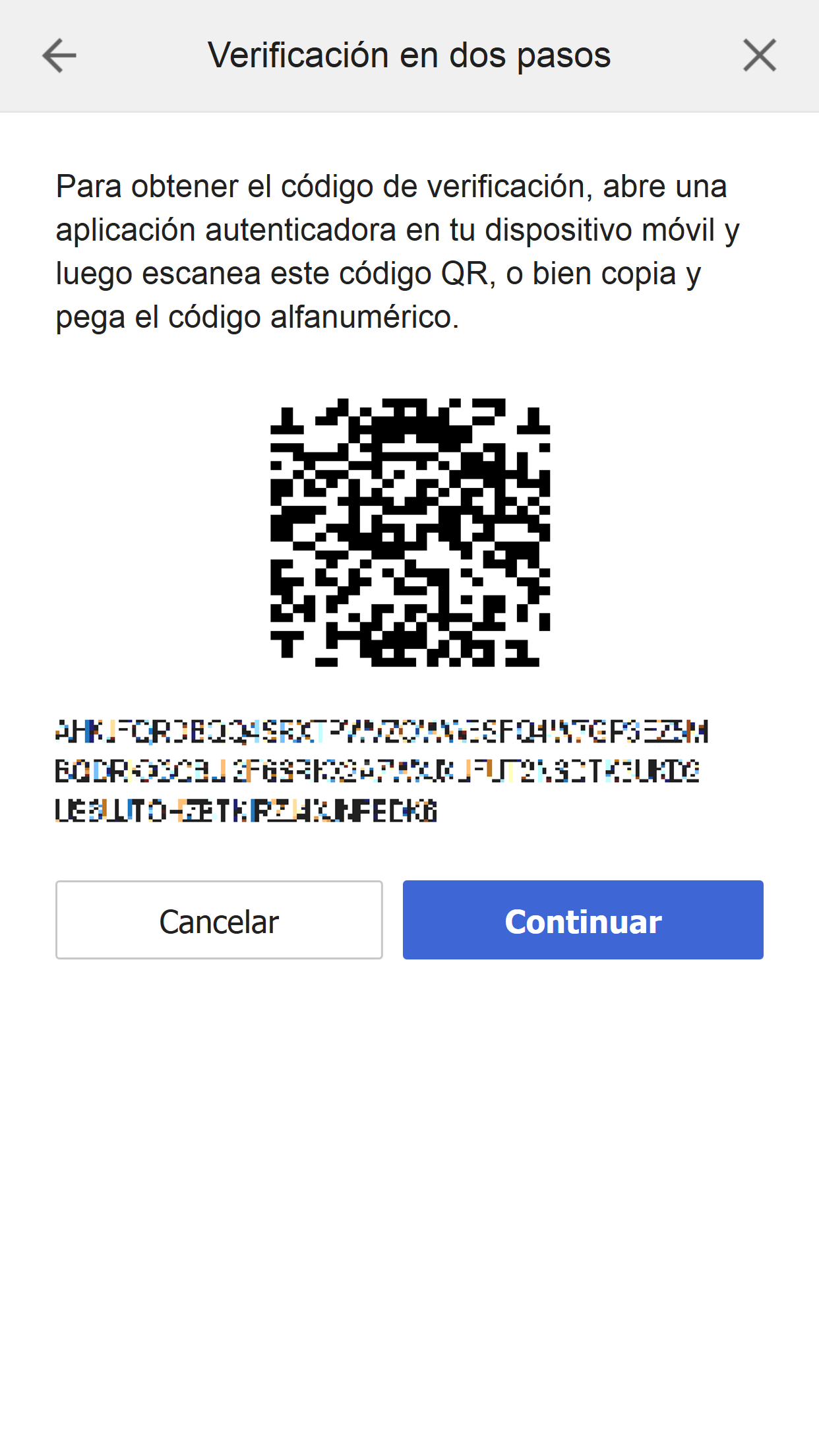 - Selecciona [Códigos de seguridad] para la verificación en dos pasos.