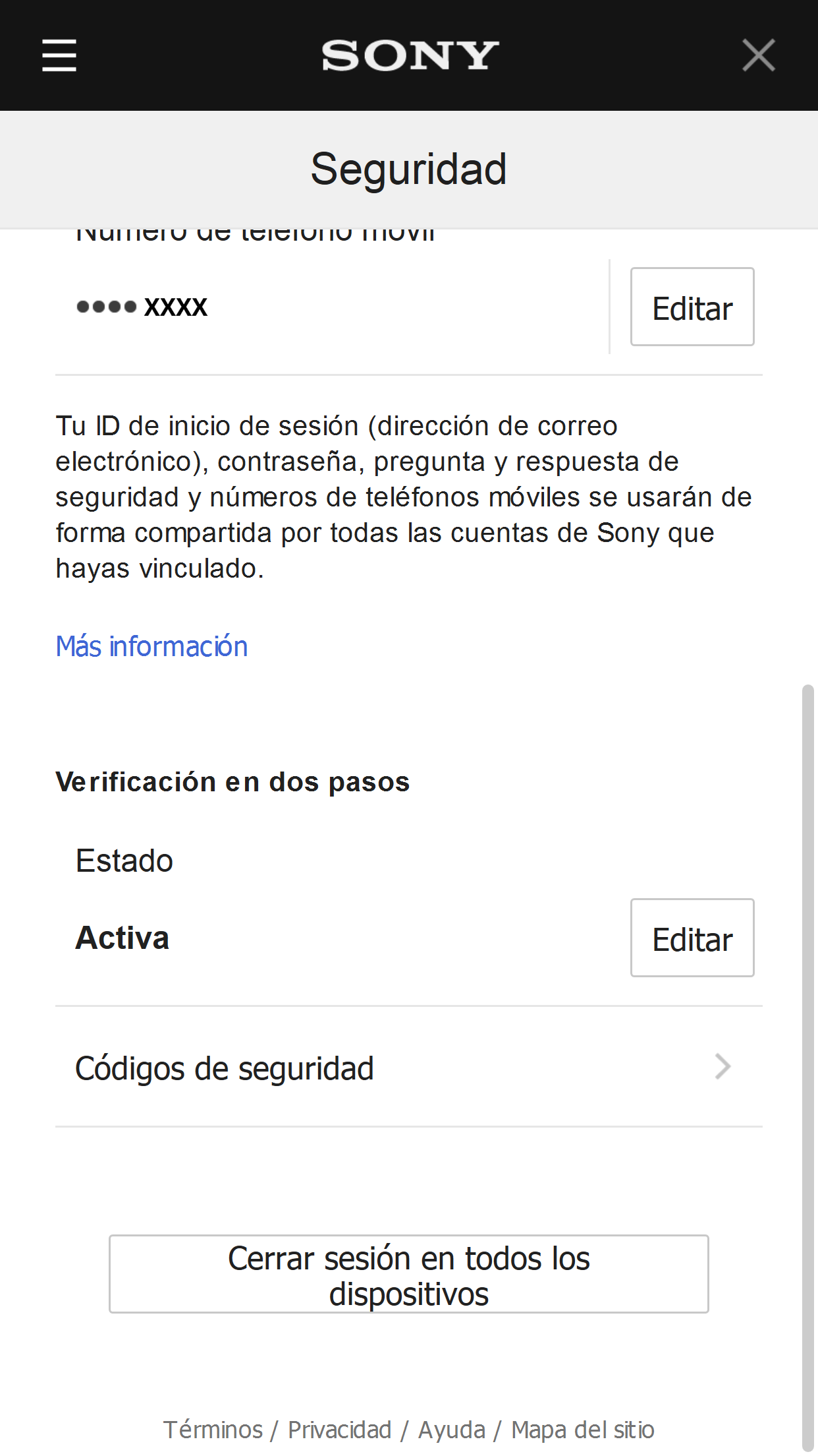 - Selecciona [Editar] para la configuración de seguridad en la pantalla "Configuración de cuenta".