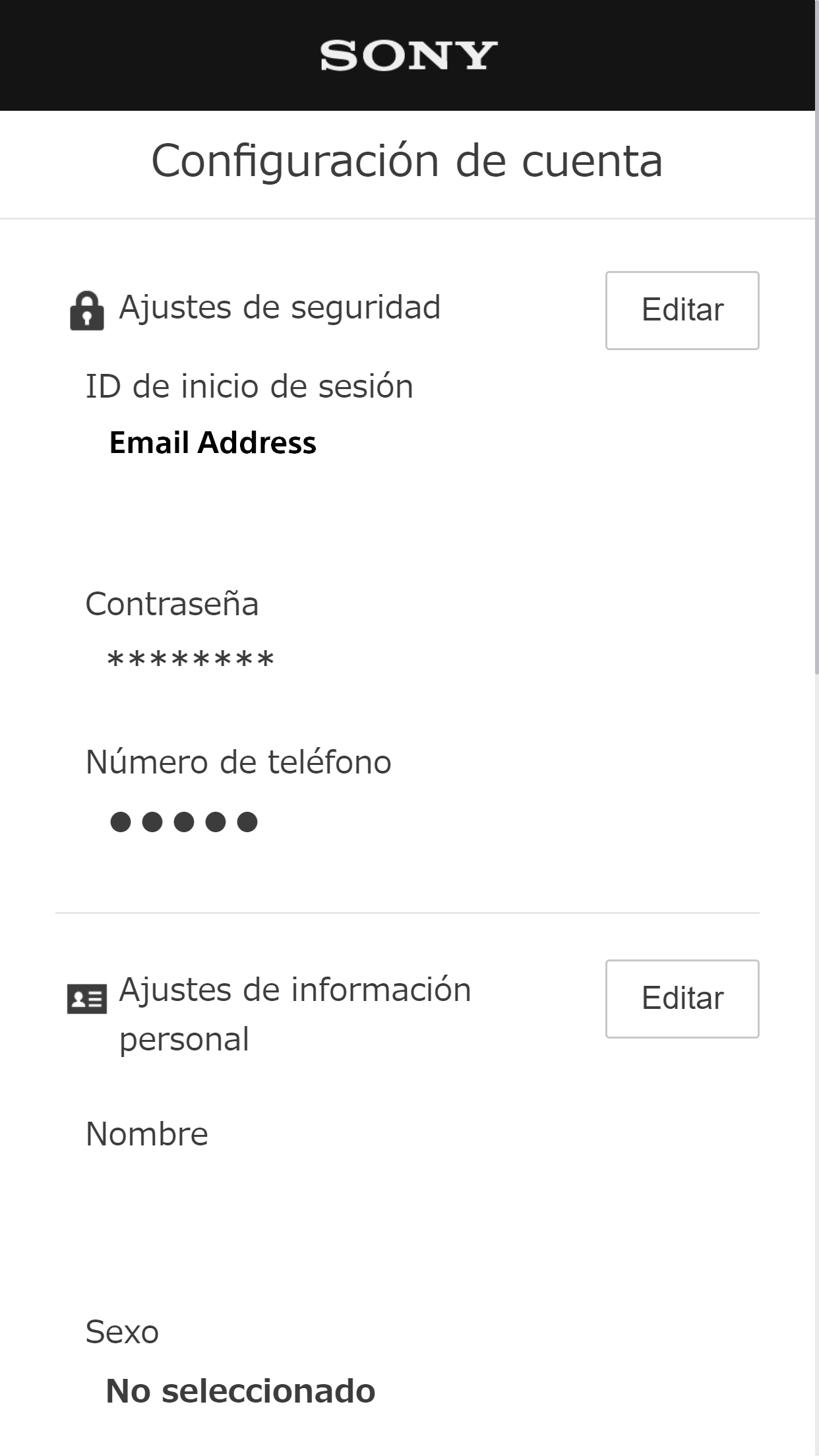 - Selecciona [Editar] para los ajustes de la información personal en la pantalla "Configuración de cuenta" que quieres cambiar.