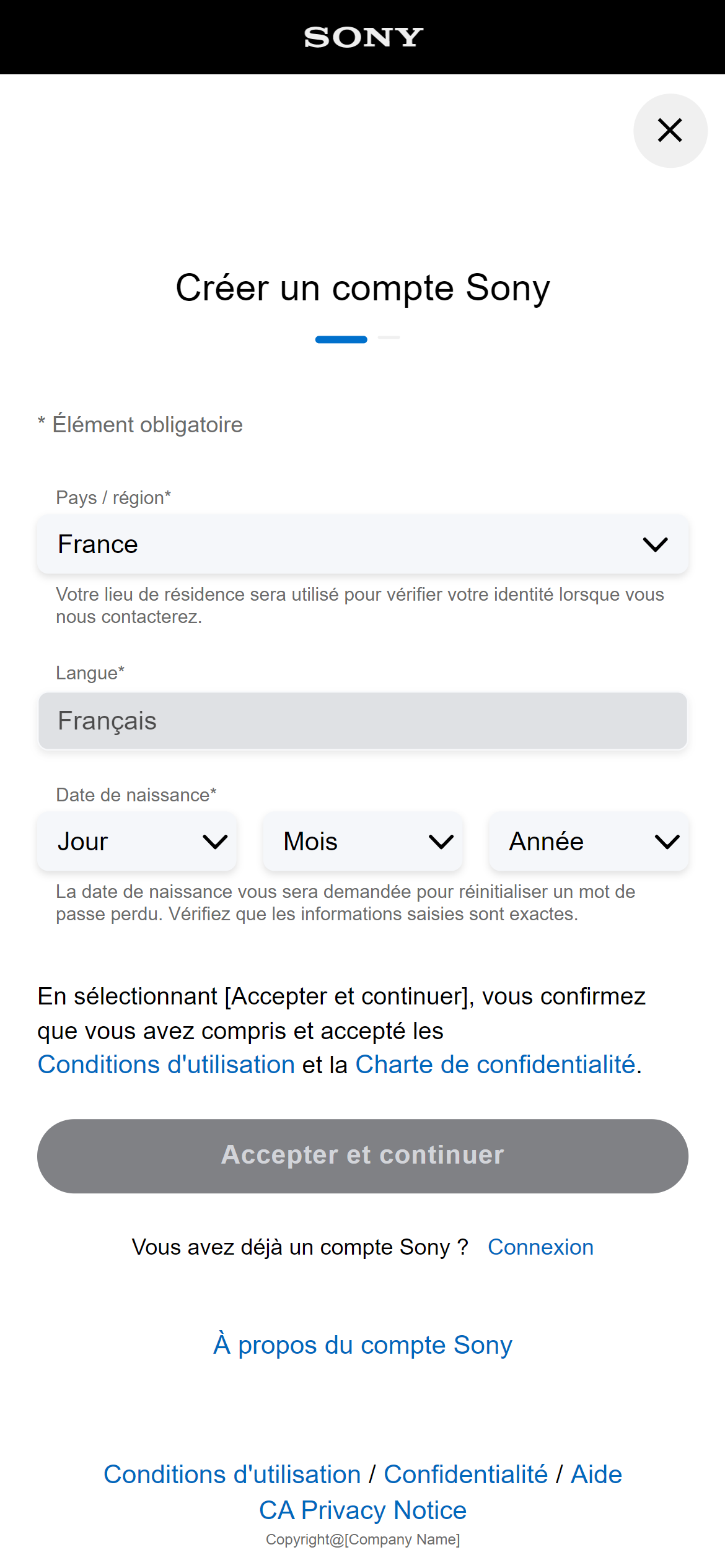Si vous avez déjà un compte pour un service applicable du groupe Sony, vous pouvez vous connecter en saisissant votre adresse e-mail et votre mot de passe enregistrés.