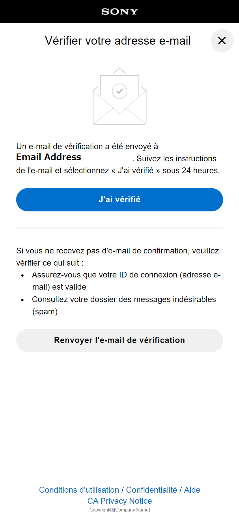 Si le message d'erreur "Votre adresse e-mail a déjà été vérifiée. Connectez-vous pour utiliser le service." s'affiche, vous pouvez utiliser le service en vous y connectant.