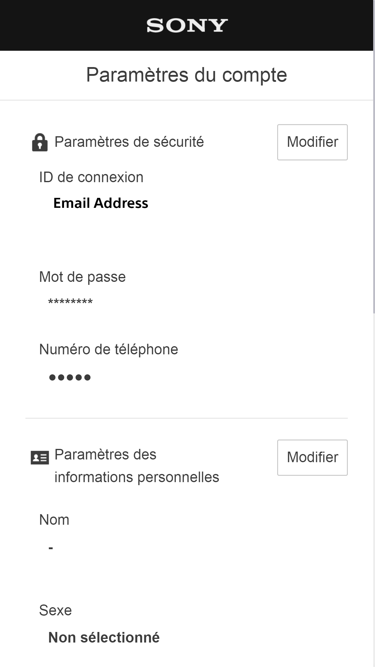 - Dans l'écran "Paramètres du compte" sélectionnez [Modifier] pour les paramètres des informations personnelles.
