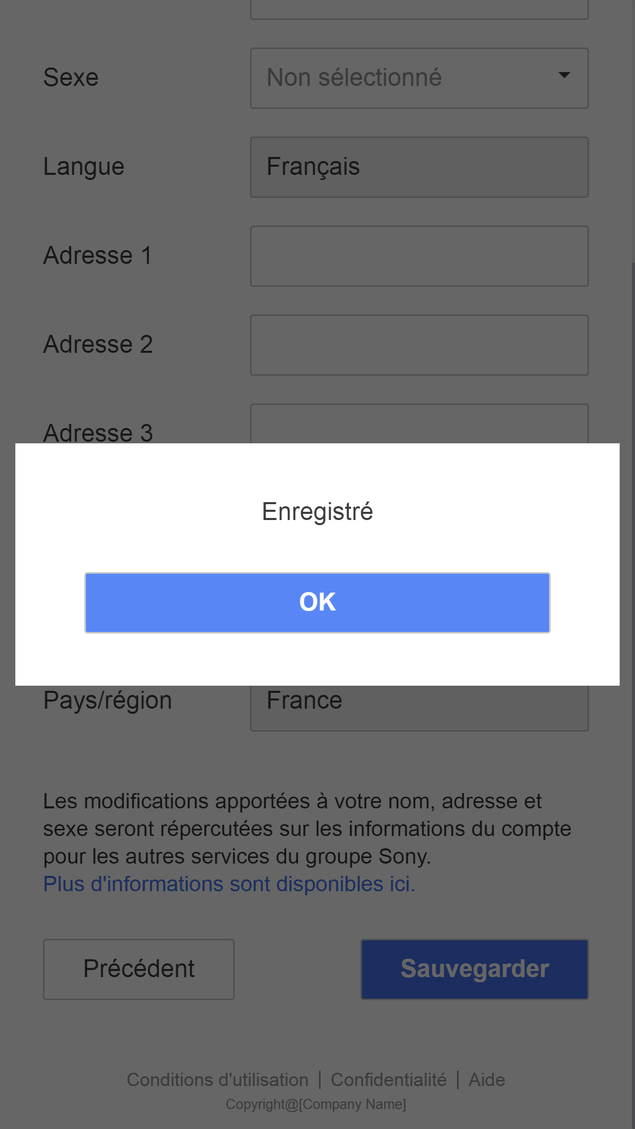 - Modifiez vos données personnelles, puis sélectionnez [Sauvegarder] pour enregistrer ces modifications.