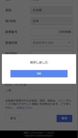 個人情報を変更し、 [保存] を選択すると個人情報の変更は完了です。