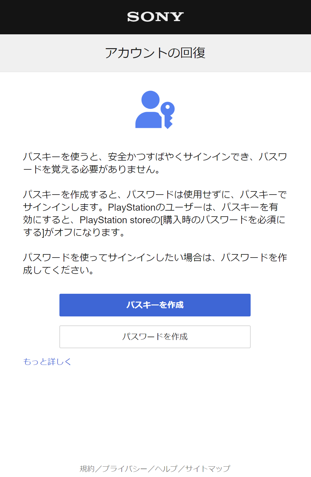 パスキーを使ってサインインしたい場合は[パスキーを作成]ボタンを押下し、画面の指示に従ってパスキーを作成してください。