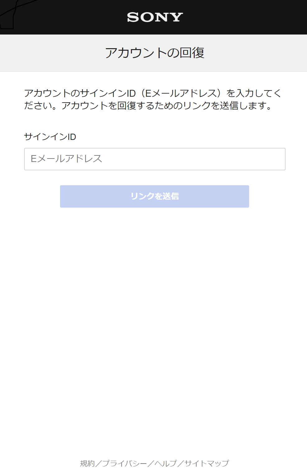 - 「アカウントの回復」画面で、サインインID(Eメールアドレス)を入力し、 [リンクを送信] を選択します。