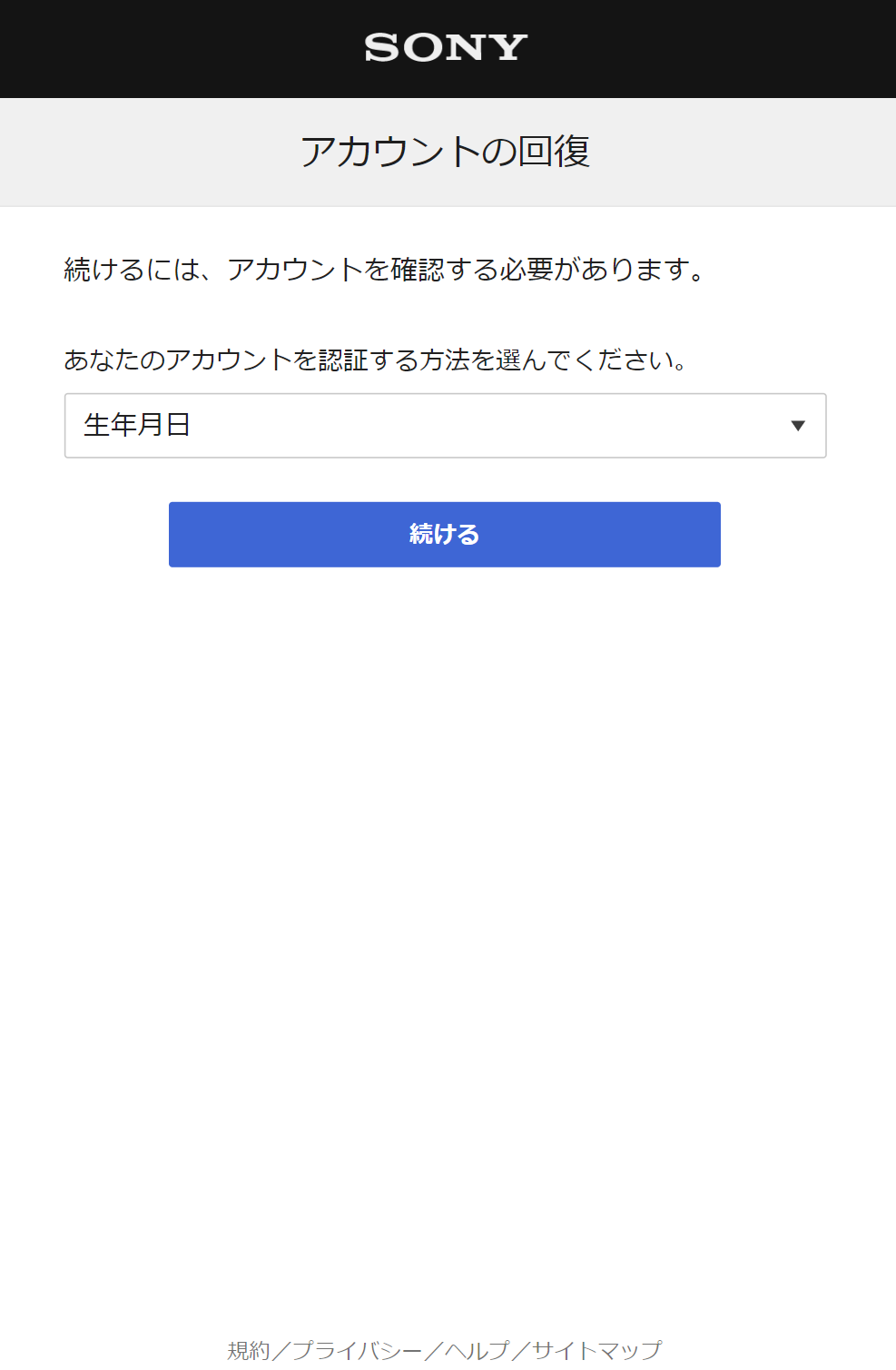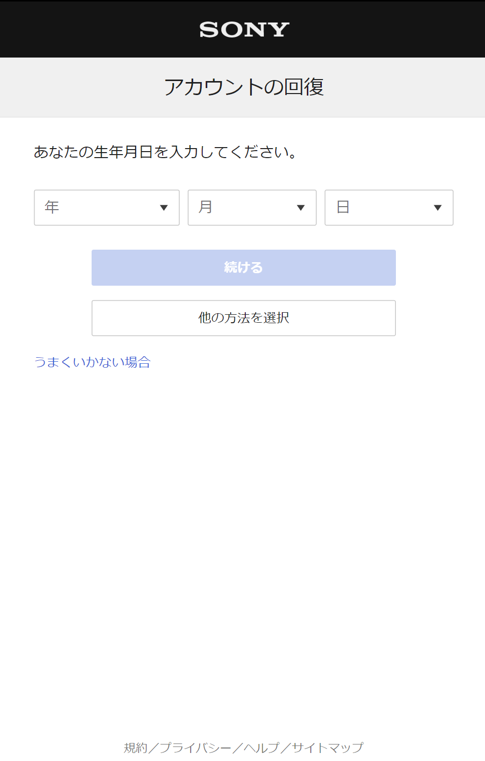 - 生年月日 : アカウント作成時に登録した生年月日を入力します。