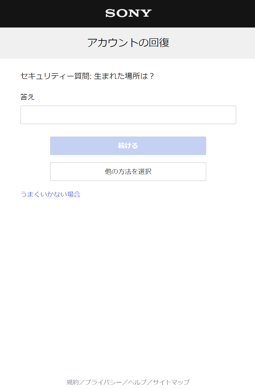 「セキュリティー質問」を選んだ場合、秘密の質問の答えを入力し [続ける] を選択します。