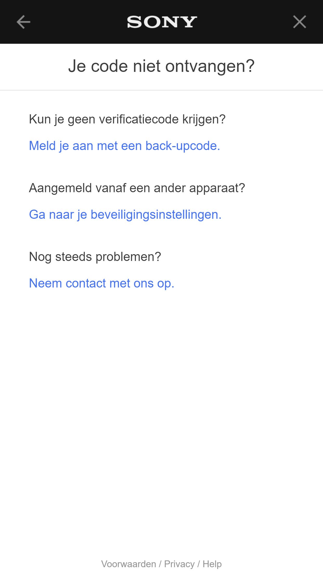 Als je geen verificatiecode via een sms-bericht of verificatie-app kunt ontvangen, kun je je aanmelden door in plaats van een verificatiecode een back-upcode in te voeren.