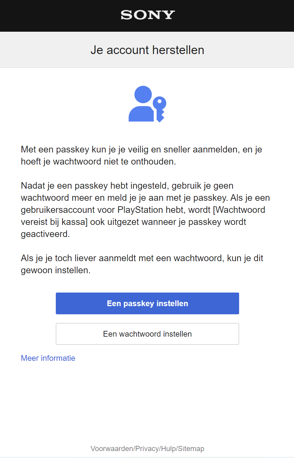 Als je je wilt aanmelden met een passkey, druk je op [Een passkey instellen] en volg je de instructies op het scherm om een passkey in te stellen. Als je je wilt aanmelden met een wachtwoord, druk je op [Een wachtwoord instellen].