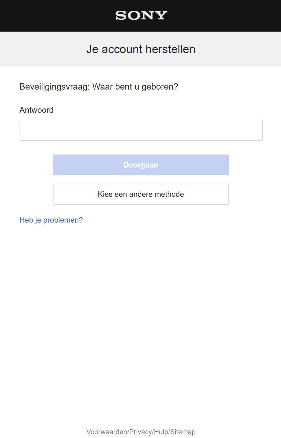 Als je Beveiligingsvraag hebt geselecteerd, voer je het antwoord op die beveiligingsvraag in en en selecteer je [Doorgaan].