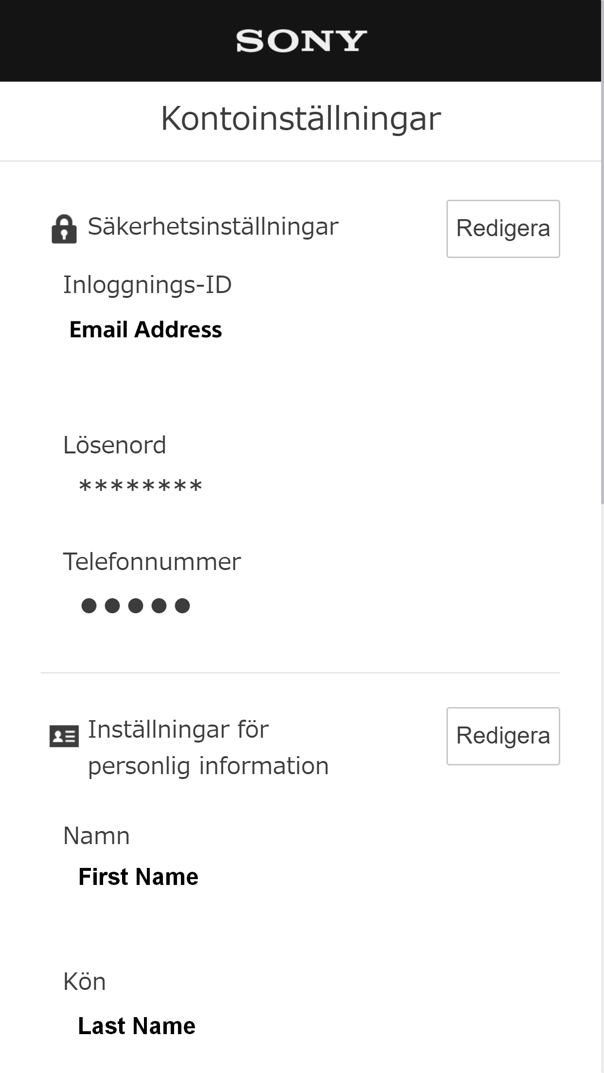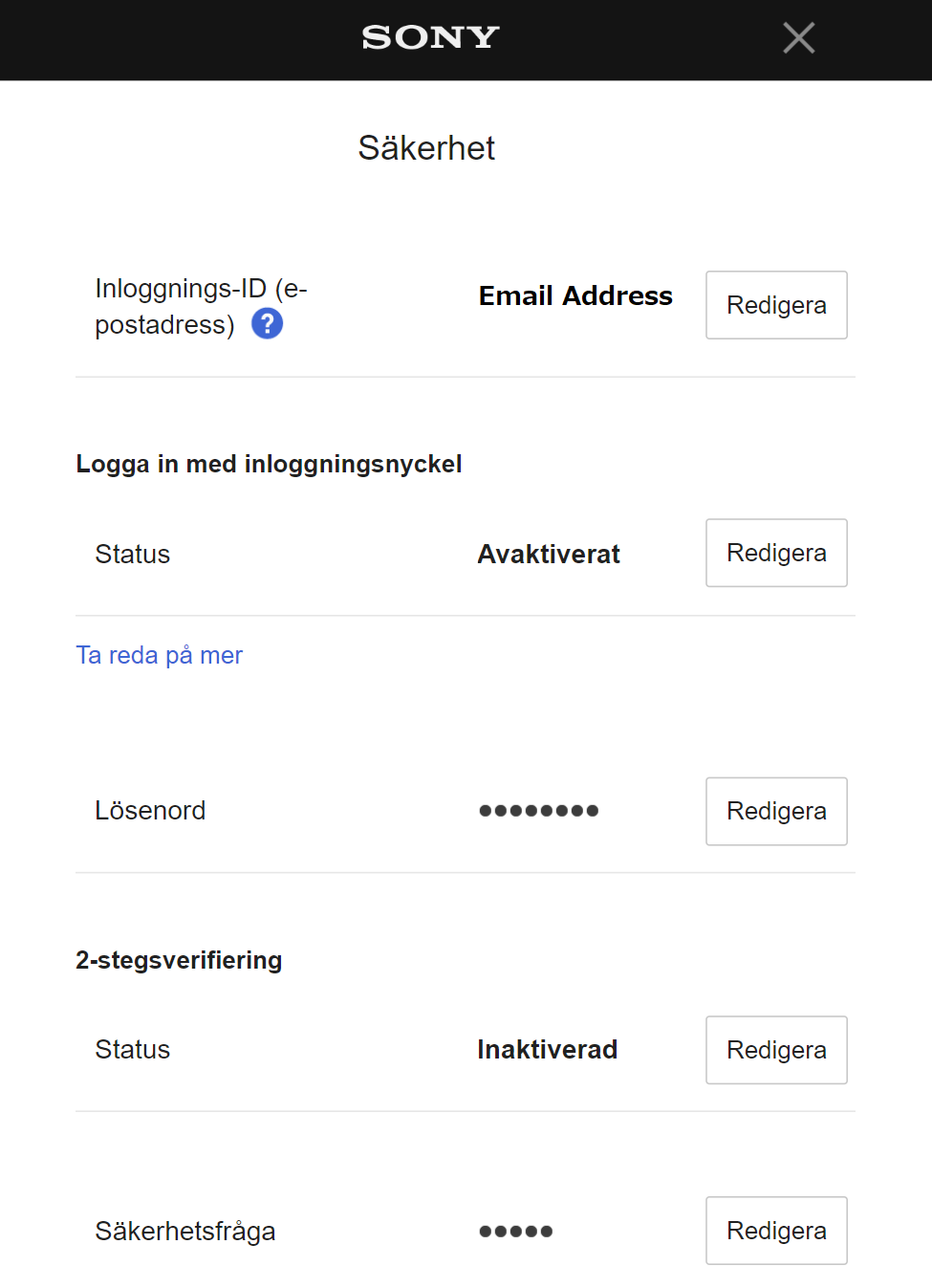 - Markera [Redigera] för säkerhetsinställningar på skärmen "Kontoinställningar".