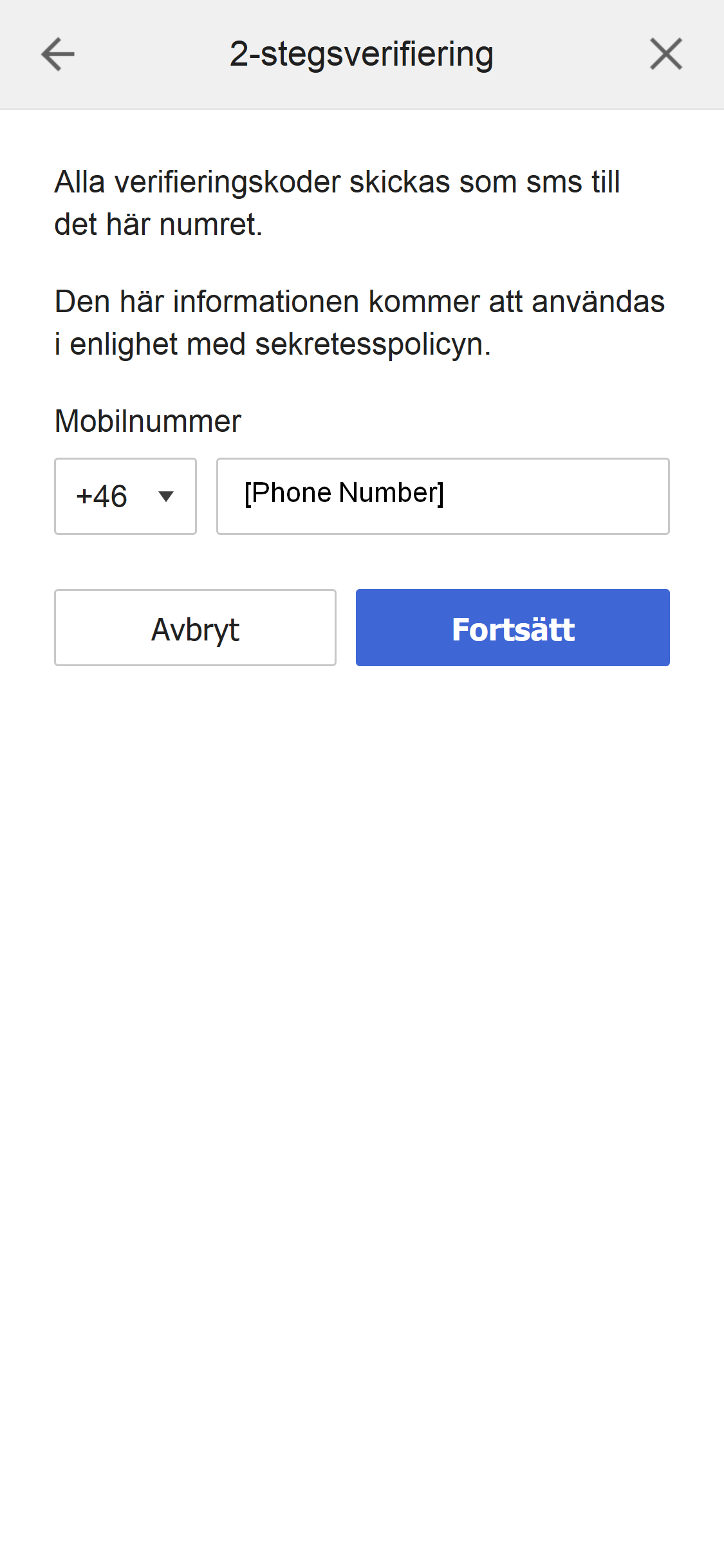 Om du aktiverar 2-stegsverifiering behöver du en verifieringskod när du ska logga in.