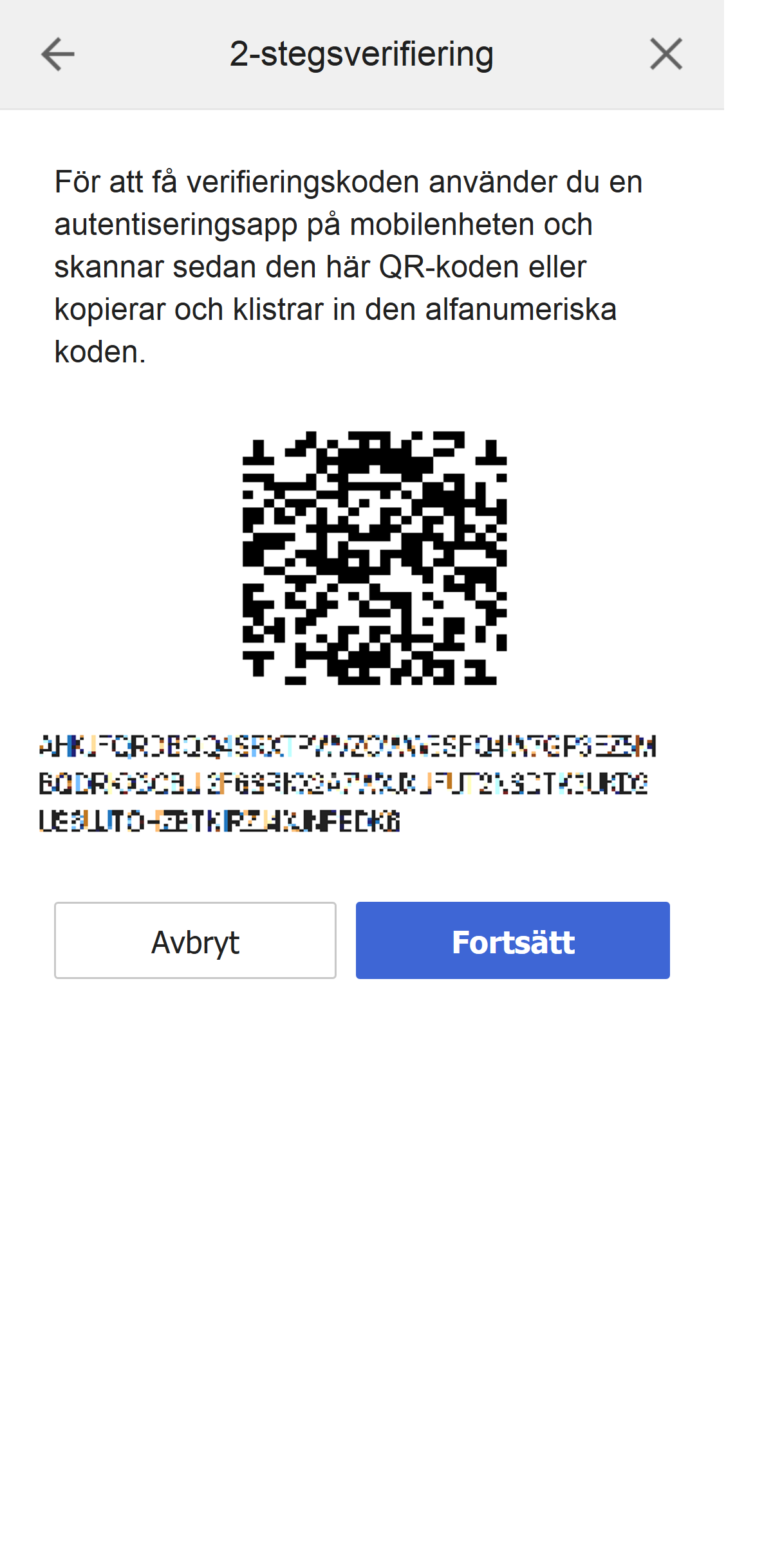 Vi rekommenderar att du antecknar reservkoden. Ta t.ex. en skärmbild.