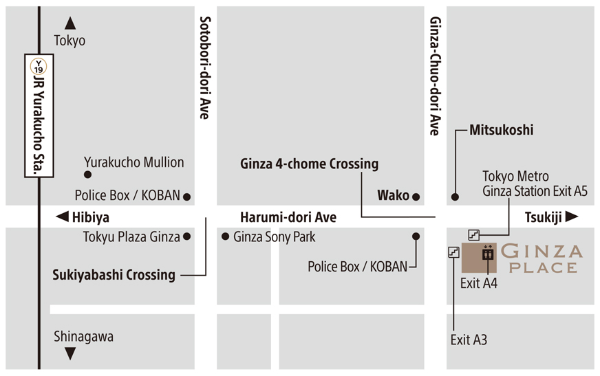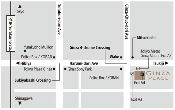 * Tokyo Metro Ginza Station Exit A4 is located on the B1F of GINZA PLACE.