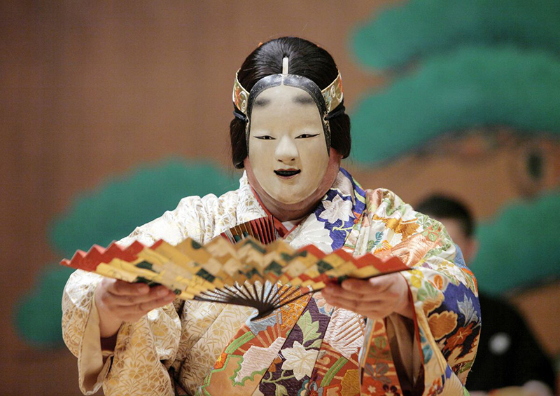 Nohgaku (Nokyogen) has a long history. It evolved from an ancient circus-like form of popular entertainment known as “Sangaku” that was introduced from China in the 8th century, by incorporating elements of Japanese performing arts like Dengaku, Imayo, Shirabyoshi and later Kabuki. The genre eventually became known as “Sarugaku” (saru meaning “monkey”) because of its comical overtones. Noh theater as it is known today was established in the 14th century by the father-son duo of Kanami and Zeami from the Yamato School of Sarugaku, with the strong patronage of Ashikaga Shogunate. Nohgaku quickly won a strong following amongst the aristocracy, which led to the rise of five troupes (Kanze, Hosho, Konparu, Kongo and Kita) by the 16th century. The art was renamed from “Sarugaku” to “Nohgaku” in the late 1800s. Over time, the costumes, masks and instruments were turned into works of art and traditional handicrafts by master artisans. Some of the costumes and masks that were made as far back as the 14th and 16th centuries are still being used today.