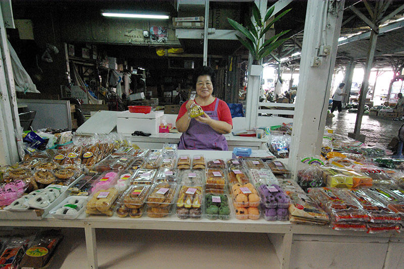 The first time I went to Okinawa was by ship, the spring after the island was returned to Japan in 1972. On that trip, I walked the Heiwadori Shotengai in Naha City where women packed the sides of the street selling salted squid and rabbitfish stuffed into coffee cans and arrayed out on makeshift displays consisting of planks stretched across wooden crates. I was repeatedly intrigued to see these petit old ladies with their hair wound into a bun on top of their heads often pulling out an abacus to help the vendor next to them tabulate the bill while they served a customer. Okinawa was the only part of Japan where a ground battle was fought. It was brutal with homes burned and many killed. Seeing how these women conducted themselves made we wonder whether this culture of helping one another spawned as a way for everyone to make it through the postwar occupation.
