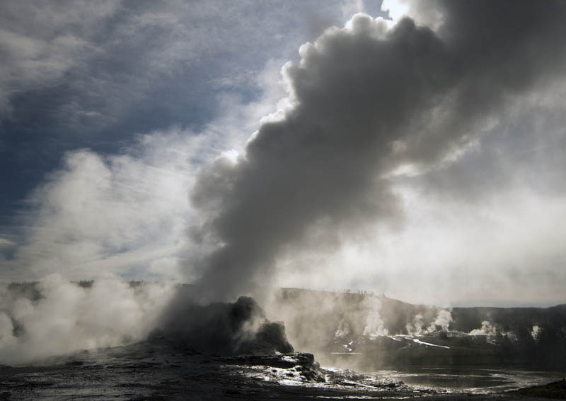 The park has so much to see from the plentiful hot springs radiantly colored by the resident thermophilic bacteria, to the geysers that suddenly shoot fountains of hot water high above head, and the angry-looking mud volcanoes that spew globs of mud. As someone who normally deals with immobile rocks and land formations, I was constantly amazed by the lively hydrothermal features of Yellowstone National Park. I hope these photos convey to you the wonder of Mother Nature and what a living planet looks like.
