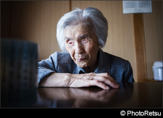 Here, a woman named Take Nakamura makes her living as an itako. My works capture a human being who has been close to and devoted to people for more than 75 years. I want you to capture the figure straight out of the image and think about her.
